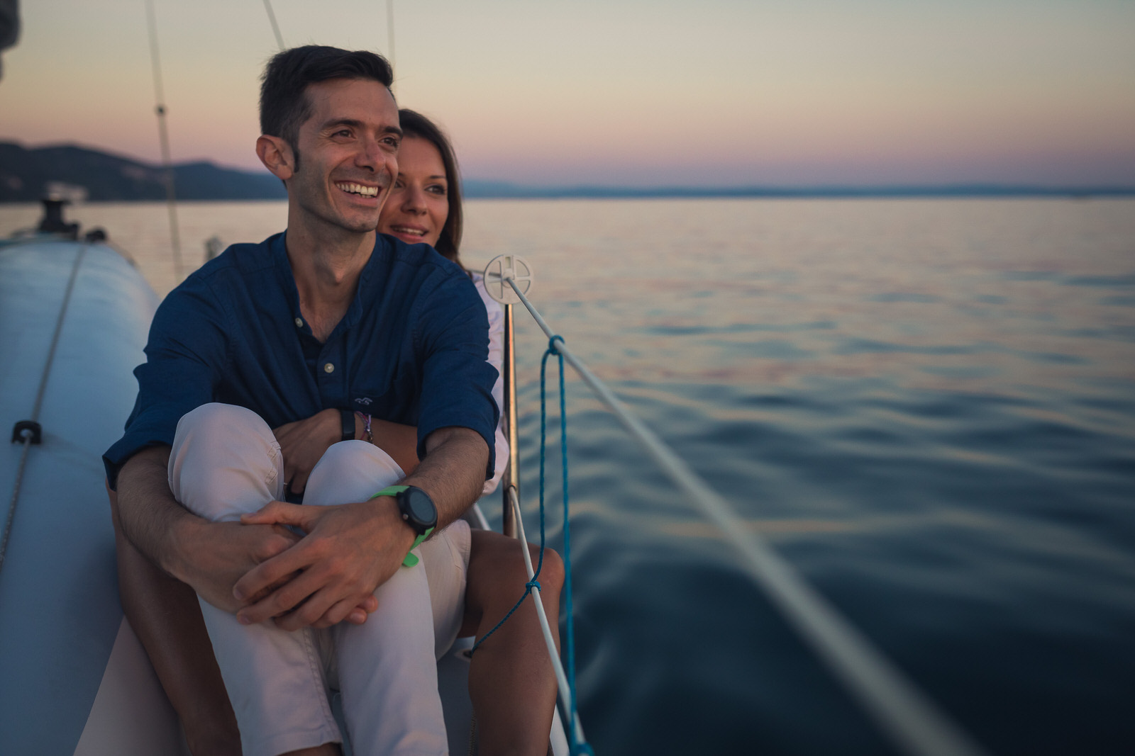 Cosa c’è di più romantico di un servizio prematrimoniale in barca a vela alla luce del tramonto?